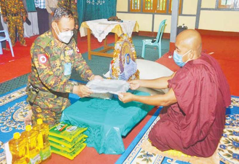 တပ်မတော် (ကြည်း၊ ရေ၊ လေ) အရာရှိ၊ စစ်သည်၊ အရာထမ်း၊ အမှုထမ်းများနှင့် စေတနာရှင် အလှူရှင်များက ကိုဗစ်-၁၉ ရောဂါ ကြိုတင်ကာကွယ်ရေးလုပ်ငန်းများ ဆောင်ရွက်နေသည့် ကာလအတွင်း ဆွမ်းကိစ္စရပ်များ အဆင်ပြေစေရန်ရည်ရွယ်၍ မြို့နယ် အသီးသီးရှိ ဘုန်းတော်ကြီး ကျောင်းများ၊ သာသနာနွယ်ဝင် သီလရှင်ကျောင်းများနှင့် ဘာသာရေးကျောင်းများတွင် ဆွမ်းဆန်တော်၊ ဆီ၊ ဆား၊ ပဲ အမယ်လေးမျိုးနှင့် လှူဖွယ်ပစ္စည်းများလှူဒါန်းခြင်း၊ နေ့ဆွမ်းများ ဆက်ကပ်လှူဒါန်းခြင်းနှင့် ကျန်းမာရေး စစ်ဆေးပေးခြင်းများကို ဆောင်ရွက်လျက်ရှိရာ စက်တင်ဘာ ၁၃ ရက်နှင့် ယနေ့တို့တွင် နေပြည်တော်ကောင်စီနယ်မြေ၊ ပျဉ်းမနား အရှေ့ခြမ်းတောင်ပေါ်ဒေသရှိ ပြဒါးချောင်း ကျေးရွာ ဘုန်းတော်ကြီးကျောင်း၊ ညောင်ပင်ကုန်း ဘုန်းတော်ကြီးကျောင်းနှင့် ဂမုန်းတောင်ဘုန်းတော်ကြီးကျောင်း၊ ပျဉ်းမနားမြို့နယ်၊ မင်္ဂလာဇေယျုံပါဠိတက္ကသိုလ် ကျောင်းတိုက်၊ မဟာလယ်တီစံကျောင်းတိုက်၊ ဝိပဿနာ ကျောင်းတိုက်၊ မူလသုဓမ္မာ မေဒနီသီလရှင်စာသင်တိုက်၊ ပုဗ္ဗသီရိမြို့နယ်၊ ဉာဏဂုဏ်ရည် စာသင်တိုက်၊ ကျောင်းစု ကျောင်းတိုက်နှင့် ကြာကန်ကျောင်းတိုက်၊ ရန်ကုန်တိုင်းဒေသကြီး၊ မှော်ဘီမြို့နယ်၊ ရဲစုကျေးရွာရှိ ရဲစုရွာဦး ကျောင်းတိုက်နှင့် လှည်းကူးမြို့နယ်၊ အင်းတိုင်ကျေးရွာရှိ စွန်းလွန်ဂူကျောင်းတိုက်၊ ဧရာဝတီတိုင်းဒေသကြီး၊ ကျောင်းကုန်းမြို့၊ ဒက္ခိဏာရာမ (ရွှေကျင်) ပရိယတ္တိစာသင်တိုက်၊ မန္တလေးတိုင်းဒေသကြီး၊ အောင်မြေသာစံမြို့နယ်၊ သစ်ဆိမ့်ကျောင်းတိုက် တို့ရှိ ဆရာတော်၊ သံဃာတော်များနှင့် သာသနာနွယ်ဝင် သီလရှင်များအတွက် ဆွမ်းဆန် တော်၊ ဆီ၊ ဆား၊ ပဲ အမယ်လေးမျိုး၊ ကိုဗစ်-၁၉ ရောဂါ ကာကွယ်ရေး အထောက်အကူပြု ပစ္စည်းများနှင့် လှူဖွယ်ပစ္စည်းများကို သက်ဆိုင်ရာ တိုင်းစစ်ဌာနချုပ်များမှ တိုင်းမှူးများနှင့် တာဝန်ရှိသူများက သွားရောက်ဆက်ကပ် လှူဒါန်းကြသည်။