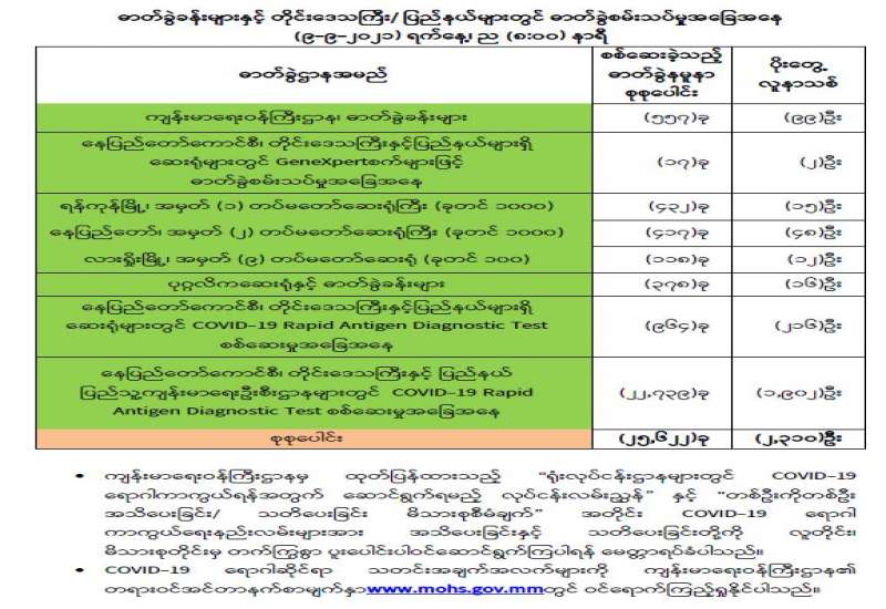 ကျန်းမာရေးဝန်ကြီးဌာနအနေဖြင့် နိုင်ငံအတွင်း ကူးစက်ဖြစ်ပွားနေသော COVID-19 ရောဂါ ကာကွယ်၊ ကုသ၊ ထိန်းချုပ်ရေးလုပ်ငန်းများကို အရှိန်အဟုန်မြှင့် ဆောင်ရွက်လျက်ရှိရာ ရောဂါ ထိန်းချုပ်ရေးလုပ်ငန်းများ အောင်မြင်နိုင်ရေးအတွက် ပြည်သူလူထုအနေဖြင့် -
