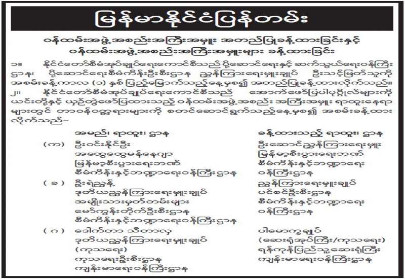 ကိုဗစ်-၁၉ ရောဂါ ကူးစက်ပြန့်ပွားမှုကို ပိုမိုထိရောက်စွာ ကာကွယ်၊ ထိန်းချုပ်၊ ကုသနိုင်ရေးအတွက် အများပြည်သူ အလုပ်ပိတ်ရက် တိုးမြှင့်သတ်မှတ်ခြင်း