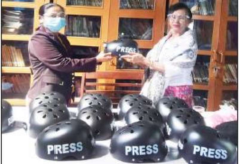 မြန်မာနိုင်ငံ သတင်းမီဒီယာကောင်စီက ပြင်ဦးလွင်မြို့ရှိ သတင်းသမားများအတွက် Press Helmet များ ထောက်ပံ့ပေးအပ်သည့်အခမ်းအနားကို ယနေ့ နံနက်ပိုင်းက ပြင်ဦးလွင်ခရိုင် ပြန်ကြားရေးနှင့် ပြည်သူ့ဆက်ဆံရေးဦးစီးဌာန ရုံးစာကြည့်တိုက်၌ကျင်းပသည်။