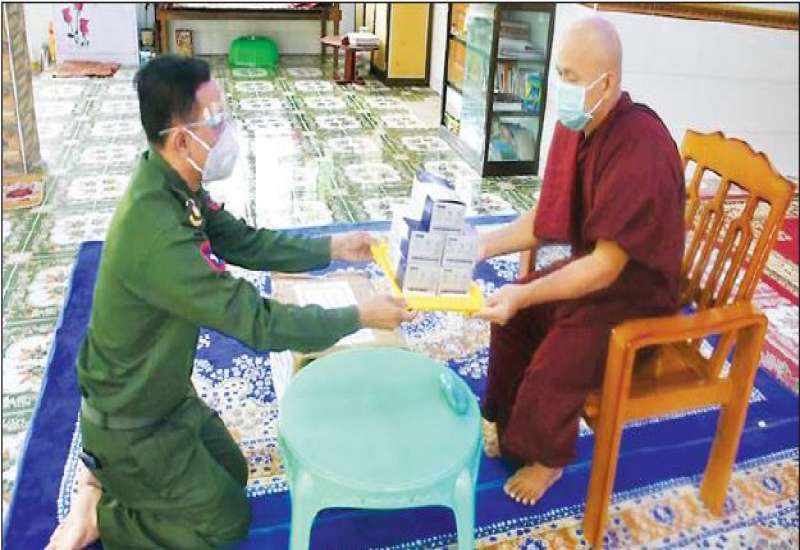 ကိုဗစ်- ၁၉ ရောဂါ ကာကွယ်၊ ထိန်းချုပ်၊ ကုသရေးလုပ်ငန်းများကို အရှိန် အဟုန်မြှင့် ဆောင်ရွက်လျက်ရှိရာ သွားလာမှုကန့်သတ်ချက်များကြောင့် စစ်မှုထမ်း ဟောင်းအဖွဲ့ဝင်များ၊ မြန်မာနိုင်ငံရဲတပ်ဖွဲ့ဝင်များ၊ ပြည်သူ့စစ်(ဌာနေ)တပ်ဖွဲ့ဝင်များ၊ ကျန်းမာရေးဝန်ထမ်းများ၊ စေတနာ့ဝန်ထမ်း Volunteerများနှင့် ဒေသခံပြည်သူများ စားရေးအဆင်ပြေစေရေးအတွက် တပ်မတော်နှင့် စေတနာရှင်အလှူရှင်များက စားသောက်ဖွယ်ရာများနှင့် ရောဂါ ကာကွယ်ရေးအထောက်အကူပြုပစ္စည်းများအား ထောက်ပံ့ပေးအပ်လျက်ရှိသည်။