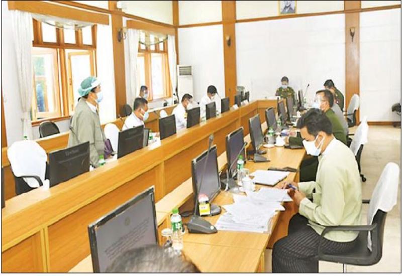 မန္တလေးတိုင်းဒေသကြီးအတွင်း ဆောင်ရွက်နေသည့် ကိုဗစ်-၁၉ ရောဂါ ကာကွယ်၊ ထိန်းချုပ်၊ ကုသရေး လုပ်ငန်းညှိနှိုင်းအစည်းအဝေးကို ယနေ့နံနက်ပိုင်းတွင် မန္တလေးတိုင်းဒေသကြီးစီမံအုပ်ချုပ်ရေးကောင်စီ ရုံး အစည်းအဝေးခန်းမ၌ ကျင်းပရာ အလယ်ပိုင်း တိုင်းစစ်ဌာနချုပ် တိုင်းမှူး ဗိုလ်ချုပ် ကိုကိုဦး၊ တိုင်း ဒေသကြီး စီမံအုပ်ချုပ်ရေးကောင်စီဝင်များ၊ ကျန်းမာ ရေးနှင့်အားကစားဝန်ကြီးဌာနမှ တာဝန်ရှိသူများ၊ မန္တလေးခရိုင် အထွေထွေအုပ်ချုပ်ရေးဦးစီးဌာနမှ တာဝန်ရှိသူများ တက်ရောက်ကြသည်။