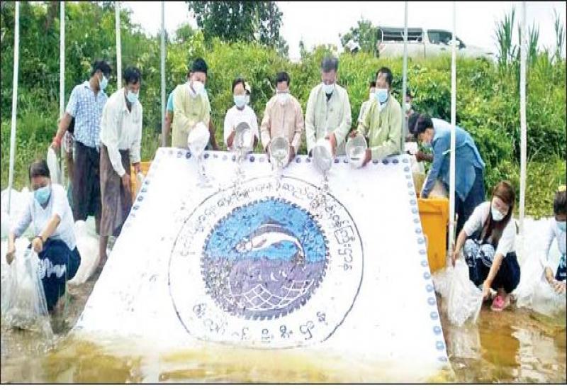 ပဲခူးတိုင်းဒေသကြီး ငါးလုပ်ငန်းဦးစီးဌာန ကြီးကြပ်မှုဖြင့် ငါးသယံဇာတ မပြုန်းတီးရေး၊ ငါးရိက္ခာဖူလုံစေရေး၊ ငါးစားသုံးမှု မြင့်မားလာစေရေးအတွက် ပဲခူးခရိုင် ငါးလုပ်ငန်းဦးစီးဌာနမှ တာဝန်ယူဆောင်ရွက်နေသော ပဲခူးမြို့နယ် အင်းတကော်မြို့ရှိ ရွှေပြည်(၁) ရေလှောင်တမံ အတွင်း၌ ယမန်နေ့ နံနက် ၉ နာရီ တွင် ငါးမျိုးစိုက်ထည့်ခြင်းအခမ်းအနားကို ကိုဗစ်၁၉ရောဂါ စည်းမျဉ်းစည်းကမ်း ညွှန်ကြားချက်များနှင့် အညီ ကျင်းပသည်။