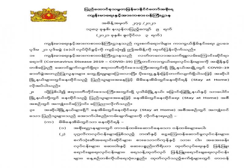 တိုင်းရင်းသားလူမျိုးများရေးရာဝန်ကြီးဌာန ပြည်ထောင်စုဝန်ကြီး ဦးစောထွန်းအောင်မြင့် သည် ယမန်နေ့က တိုင်းရင်းသားလူမျိုးများရေးရာဝန်ကြီးဌာန အစည်းအဝေးခန်းမ၌ ကိုဗစ်-၁၉ တားဆီးကာကွယ်ရေး၊ ကျန်းမာရေးဆိုင်ရာ ညွှန်ကြားချက်များနှင့်အညီ ပြည်ထောင်စုဝန်ကြီးရုံးနှင့် ဦးစီးဌာနများရှိ အရာထမ်းများကို ကိုဗစ်-၁၉ ကပ်ရောဂါကာကွယ်ရေးနှင့် ပတ်သက်၍ တွေ့ဆုံမှာကြားသည်။