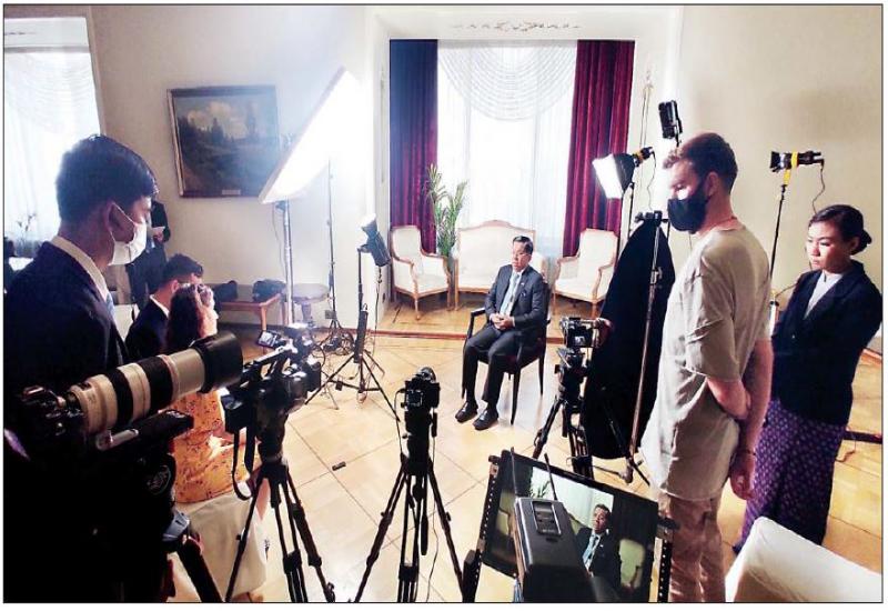 နိုင်ငံတော်စီမံအုပ်ချုပ်ရေးကောင်စီဥက္ကဋ္ဌ၊ တပ်မတော်ကာကွယ်ရေးဦးစီးချုပ် ဗိုလ်ချုပ်မှူးကြီး မင်းအောင်လှိုင်သည် ဇွန် ၂၄ ရက် နံနက်ပိုင်းတွင် ရုရှားဖက်ဒရေးရှင်းနိုင်ငံ RIA သတင်းဌာနမှ အထူးသတင်းထောက် Ms. Kukushina Tabana အား ရုရှားဖက်ဒရေးရှင်းနိုင်ငံ မော်စကိုမြို့ရှိ Metropol Hotel ၌ လက်ခံတွေ့ဆုံ၍ သိရှိလိုသည်များကို ဖြေကြားသည်။ အဆိုပါ မေးမြန်းမှုများနှင့် ဖြေကြားမှုများကို ဖော်ပြလိုက်ပါသည် -