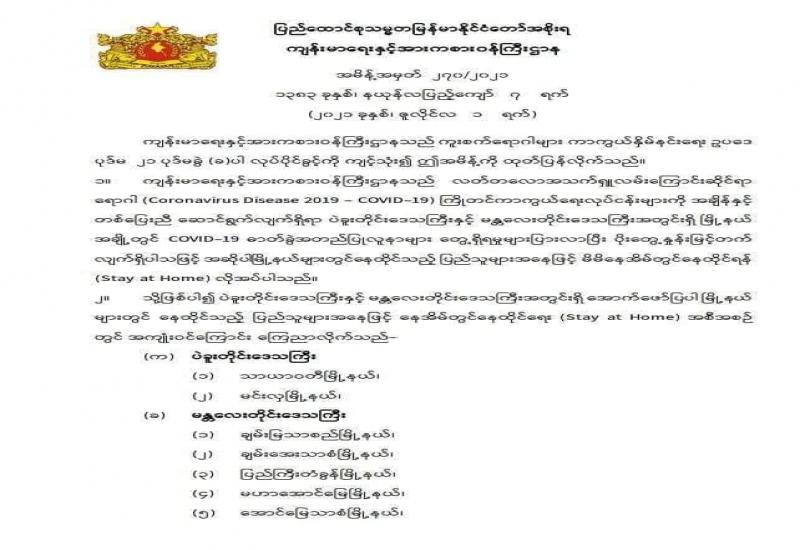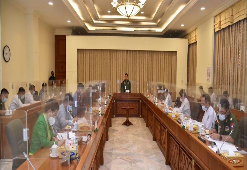 Coronavirus Disease 2019 (COVID-19) ထိန်းချုပ်ရေးနှင့် အရေးပေါ်တုံ့ပြန်ရေးကော်မတီ ပဉ္စမအကြိမ် လုပ်ငန်းညှိနှိုင်းအစည်းအဝေးကို ယနေ့ညနေပိုင်းတွင် နေပြည်တော်ရှိ နိုင်ငံတော် စီမံအုပ်ချုပ်ရေးကောင်စီ ဥက္ကဋ္ဌရုံး အစည်းအဝေးခန်းမ၌ကျင်းပရာ Coronavirus Disease 2019 (COVID-19) ထိန်းချုပ်ရေးနှင့် အရေးပေါ်တုံ့ပြန်ရေးကော်မတီဥက္ကဋ္ဌ ၊ နိုင်ငံတော် စီမံအုပ်ချုပ်ရေး ကောင်စီ ဒုတိယဥက္ကဋ္ဌ၊ ဒုတိယတပ်မတော်ကာကွယ်ရေးဦးစီးချုပ်၊ ကာကွယ်ရေးဦးစီးချုပ် (ကြည်း) ဒုတိယဗိုလ်ချုပ်မှူးကြီး စိုးဝင်း တက်ရောက်အမှာစကား ပြောကြားသည်။