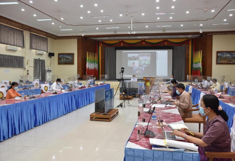 ကိုဗစ်-၁၉ ရောဂါကာကွယ်ထိန်းချုပ်ရေးလုပ်ငန်းညှိနှိုင်းအစည်းအဝေးကို ယနေ့နံနက်ပိုင်းတွင် ကျန်းမာရေးနှင့်အားကစားဝန်ကြီးဌာန၊ ရုံးအမှတ်(၄) အစည်းအဝေးခန်းမ၌ ဗွီဒီယိုကွန်ဖရင့်စနစ်ဖြင့် ကျင်းပသည်။