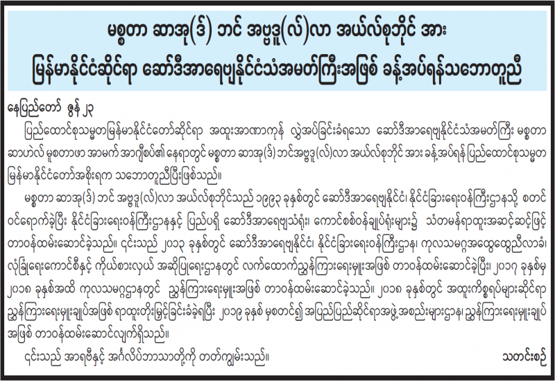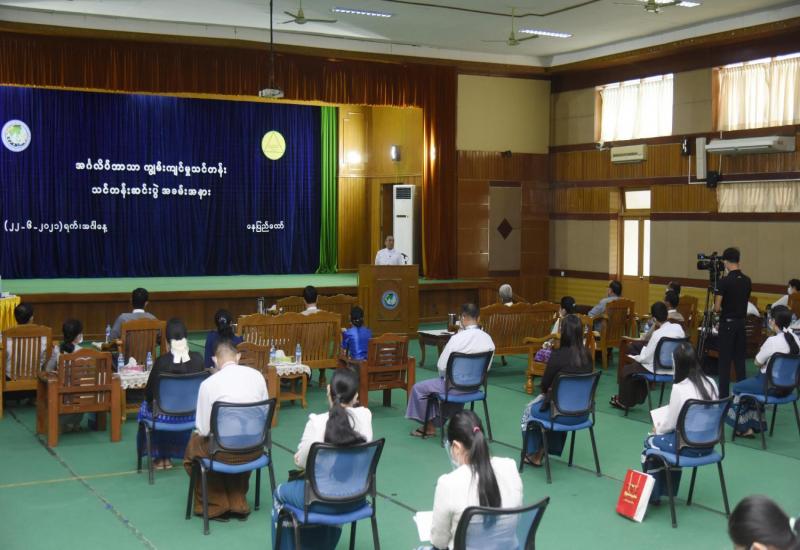ပြန်ကြားရေးဝန်ကြီးဌာနနှင့် ပညာရေးဝန်ကြီးဌာနတို့ ပူးပေါင်းစီစဉ်ဖွင့်လှစ်သော အင်္ဂလိပ်ဘာသာ ကျွမ်းကျင်မှုသင်တန်းဆင်းပွဲ အခမ်းအနားကို ယနေ့နံနက် ၁၀ နာရီတွင် နေပြည်တော်ရှိ ပြန်ကြားရေး ဝန်ကြီးဌာန အစည်းအဝေးခန်းမ၌ ကျင်းပသည်။