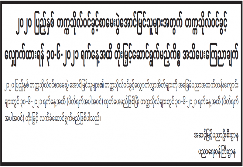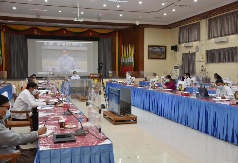 ကိုဗစ်-၁၉ ရောဂါ ကာကွယ်ထိန်းချုပ်ရေး လုပ်ငန်းညှိနှိုင်းအစည်းအဝေးကို ယနေ့ နံနက် ပိုင်းတွင် ကျန်းမာရေးနှင့် အားကစားဝန်ကြီးဌာန၊ ရုံးအမှတ်(၄) အစည်းအဝေးခန်းမ၌ Video Conferencing စနစ်ဖြင့် ကျင်းပသည်။