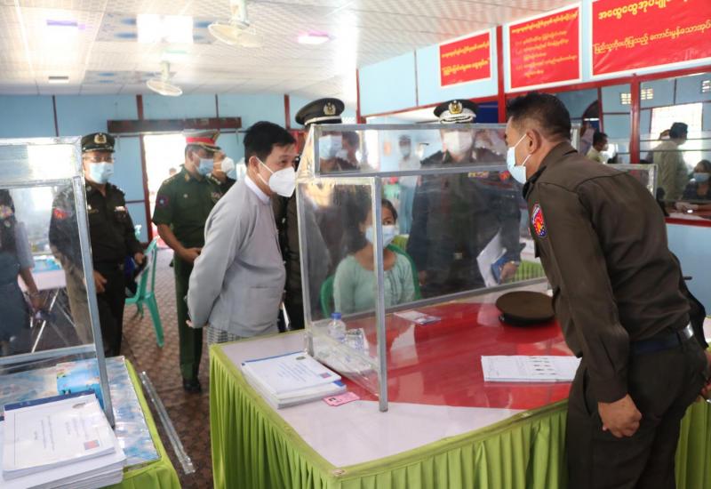 အလုပ်သမား၊ လူဝင်မှုကြီးကြပ်ရေးနှင့် ပြည်သူ့အင်အားဝန်ကြီးဌာန ပြည်ထောင်စုဝန်ကြီး ဦးမြင့်ကြိုင်သည် ယနေ့နံနက်ပိုင်းက မိတ္ထီလာမြို့နယ်၊ ထမုန်ကန်ကျေးရွာ အုပ်ချုပ်ရေးမှူးရုံး၌ မိတ္ထီလာမြို့နယ်ဦးစီးမှူးရုံးမှ ဝန်ထမ်းများက ဒေသခံရွာသူရွာသားများကို ပန်းခင်းစီမံချက်ဖြင့် အိမ်ထောင်စုလူဦးရေစာရင်းနှင့် နိုင်ငံသားစိစစ်ရေးကတ်ပြား ထုတ်ပေးခြင်းလုပ်ငန်း ကွင်းဆင်း ဆောင်ရွက်ပေးနေမှုများကို လှည့်လည်ကြည့်ရှုအားပေးကာ တာဝန်ရှိသူများနှင့် ရပ်ကွက် အုပ်ချုပ်ရေးမှူးများကို လိုအပ်သည်များမှာကြားပြီး ရွာသူရွာသားများအား ရင်းရင်းနှီးနှီး နှုတ်ဆက်သည်။