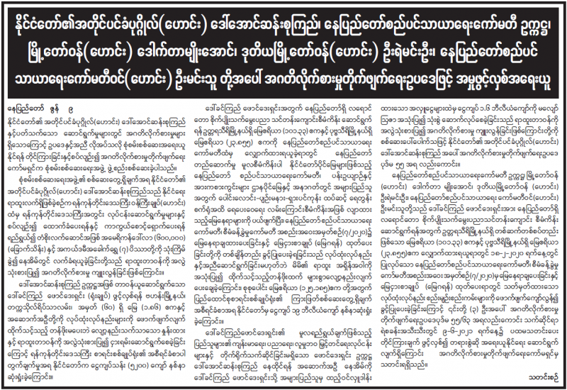 နိုင်ငံတော်တည်ငြိမ်အေးချမ်းမှုကို ပျက်ပြားထိခိုက်စေရန် ရည်ရွယ်၍ လူငယ်များအား တိုင်းရင်းသားလက်နက်ကိုင်အဖွဲ့များထံတွင် အကြမ်းဖက်သင်တန်းများ တက်ရောက်စေပြီး အများပြည်သူလူထု သွားလာလှုပ်ရှားလျက်ရှိသည့် နေရာများကို မိုင်းထောင်တိုက်ခိုက်ခြင်း၊ ကလေးသူငယ်များ၏ ပညာရေးကို ထိခိုက်စေရန် စာသင်ကျောင်းများအား မီးရှို့ဖျက်ဆီးခြင်း၊ မိုင်းထောင်တိုက်ခိုက်ခြင်းများကို လူသားချင်းစာနာ ထောက်ထားမှုမရှိဘဲ လုပ်ဆောင်လျက်ရှိသည်။