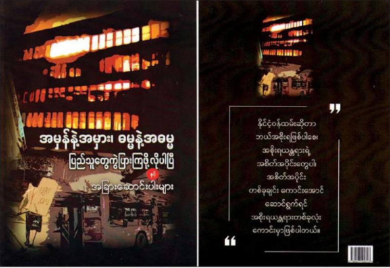 ပြန်ကြားရေးဝန်ကြီးဌာနက ၂၀၂၁ ခုနှစ်အတွက် စာအုပ်အမှတ်စဉ် ၂၂ ဖြစ်သည့် “အမှန်နဲ့အမှား၊ ဓမ္မနဲ့အဓမ္မ ပြည်သူတွေ ကွဲပြားကြဖို့ လိုပါပြီနှင့် အခြားဆောင်းပါးများ” ပါဝင်သော မေလတွင် ပထမအကြိမ်အဖြစ်ထုတ်ဝေထားသည့် စာအုပ်ကို စာချစ်သူများ အတွက် မိတ်ဆက်ပေး လိုပါသည်။ ထိုစာအုပ်တွင် ၂၀၂၁ ခုနှစ် ဖေဖော်ဝါရီလနှင့် မတ်လအတွင်း နိုင်ငံပိုင်သတင်း စာများဖြစ်သည့် မြန်မာ့အလင်းနှင့် ကြေးမုံတို့တွင် ဖော်ပြပါရှိခဲ့သည့် ဆောင်းပါး ၉၂ ပုဒ်ကို စုစည်းထုတ်ဝေထားခြင်း ဖြစ်ပါသည်။