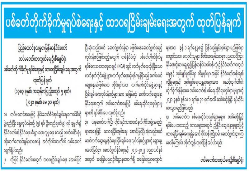 ၁။ တပ်မတော်က နိုင်ငံတော်တာဝန်ကို လွှဲပြောင်းရယူခဲ့ရသည့် ၂၀၂၁ ခုနှစ်၊ ဖေဖေါ်ဝါရီလ ၁ ရက်နေ့ နောက်ပိုင်းမှစ၍ NLD ပါတီဝင်များ၊ ၎င်းပါတီကိုထောက်ခံသူ အစွန်းရောက်များ၊ မတရား အသင်းနှင့် အကြမ်းဖက်အုပ်စုများဖြစ်သည့် CRPH နှင့် NUG၊ CDM လှုံ့ဆော်မှုနှင့် နိုင်ငံတော် တည်ငြိမ်အေးချမ်းရေးကို မလိုလားသည့် ပြည်တွင်း၊ ပြည်ပမှလူပုဂ္ဂိုလ်၊ အဖွဲ့အစည်းများ၏ သွေးထိုးလှုံ့ဆော်မှု၊ ခြောက်လှန့်မှုတို့ကြောင့် အချို့သော ကျောင်းသား၊ ကျောင်းသူ လူငယ်လူရွယ် များ၊ နိုင်ငံ့ဝန်ထမ်းများနှင့် မိမိတို့နိုင်ငံသားများသည် EAO များတည်ရှိရာနေရာ များနှင့် ပြည်ပနိုင်ငံများသို့ စိုးရိမ်စိတ်များဖြင့် တိမ်းရှောင်နေကြောင်း သိရှိရပါသည်။