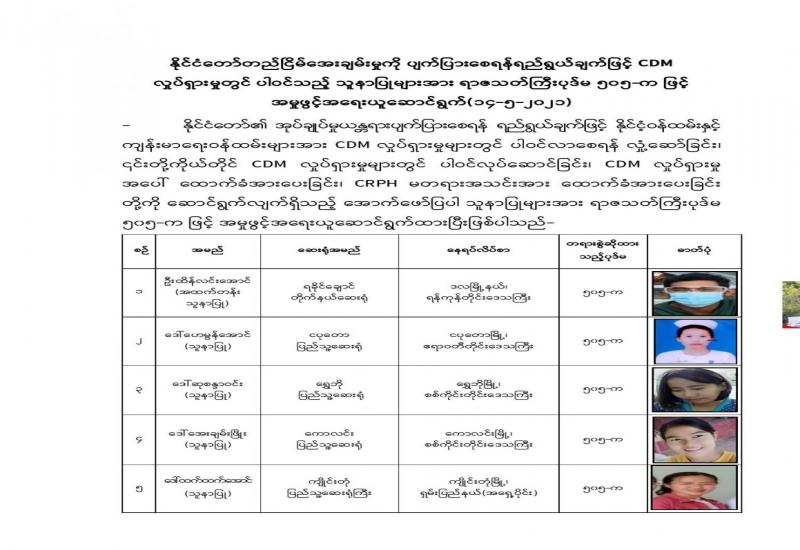 ပြည်သူလူထု၏ ခွဲစိတ်ကုသမှုဆိုင်ရာရောဂါ၊ သွားနှင့် ခံတွင်းရောဂါ၊ အရိုး အကြောရောဂါ၊ အစာအိမ် ရောဂါ၊ မျက်စိရောဂါ၊ နား၊ နှာခေါင်း၊ လည်ချောင်းရောဂါ၊ သားဖွားမီးယပ်ရောဂါ၊ သွေးတိုးရောဂါ၊ နှလုံးရောဂါ၊ အထွေထွေရောဂါတို့နှင့် ပတ်သက်၍ လိုအပ်သည့် ကျန်းမာရေး စောင့်ရှောက်မှု လုပ်ငန်းများ ဆောင် ရွက်ပေးနိုင်ရန်အတွက် အခက်အခဲ ဖြစ်ပေါ်လျက်ရှိသည့် ဒေသအသီးသီးမှ ဝန်ထမ်းများနှင့် ဒေသခံများ၏ တောင်းဆိုမှုအရ တပ်မတော်မှ ဆေးကုသရေးအဖွဲ့များ စေလွှတ်၍ ဆေးကုသရေး လုပ်ငန်းများကို ဆောင်ရွက်ပေးလျက်ရှိသည်။