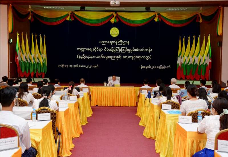 ပညာရေးဝန်ကြီးဌာန၊ နည်းပညာ၊ သက်မွေးပညာနှင့် လေ့ကျင့်ရေးကဏ္ဍ ဘဏ္ဍာရေး ဆိုင်ရာစီမံခန့်ခွဲကြီးကြပ်မှုမွမ်းမံသင်တန်းဖွင့်လှစ်ပွဲအခမ်းအနားကို ယနေ့ နံနက် ၈ နာရီတွင် နေပြည်တော်ရှိ ပညာရေးဝန်ကြီးဌာန ရုံးအမှတ်(၂၁) အစည်းအဝေးခန်းမ၌ကျင်းပသည်။