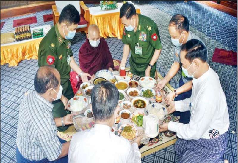 ဘုန်းတော်ကြီးကျောင်းများ၊ သာသနာ့နွယ်ဝင် သီလရှင်ကျောင်းများနှင့် ဘာသာရေး ကျောင်းများတွင် ဆွမ်းအဆင်ပြေစေ ရေးအတွက် တပ်မတော် (ကြည်း၊ ရေ၊ လေ) အရာရှိ၊ စစ်သည်၊ အရာထမ်း၊ အမှုထမ်းများက တိုင်းစစ်ဌာနချုပ်များအလိုက် မြို့နယ်အသီးသီး၌ ဆွမ်းဆန်တော်၊ ဆီ၊ ဆား၊ ပဲ အမယ်လေးမျိုးနှင့် လှူဖွယ်ပစ္စည်းများ လှူဒါန်းခြင်း၊ နေ့ဆွမ်းများ ဆက်ကပ်လှူဒါန်းခြင်းနှင့် ကျန်းမာ ရေးစစ်ဆေးပေးခြင်းများကို ဆောင်ရွက်လျက် ရှိသည်။
