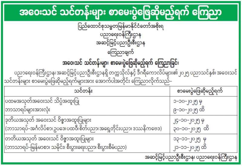 ပါတီစုံဒီမိုကရေစီ အထွေထွေရွေးကောက်ပွဲကြီးကျင်းပရန် ရက်ပေါင်း(၁၀၀)အလိုသို့ ရောက်ရှိခဲ့ပြီဖြစ်သည်။ ရွေးကောက်ပွဲ ကျင်းပမည့်ရက်၊ ရွေးကောက်ပွဲစနစ်၊ မဲပေးပုံ စသည်ဖြင့် ထူးခြားသည့် ပြုပြင်ပြောင်းလဲမှုများ ပြုလုပ်ထားသည့် ရွေးကောက်ပွဲကြီးသည် မိမိတို့နိုင်ငံတော်ကြီး ပါတီစုံဒီမိုကရေစီ လမ်းကြောင်းပေါ်တွင် ခိုင်ခိုင်မာမာ ဆက်လက်လျှောက်လှမ်း နိုင်ရေးအတွက် အရေးကြီးသည့် ရွေးကောက်ပွဲကြီးဖြစ်သည်။