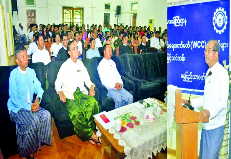 အလုပ်သမားရေးရာ လုပ်ငန်းညှိနှိုင်းရေးကော်မတီ (WCC) အဖွဲ့ဝင်များ၏ စွမ်းရည်မြှင့် သင်တန်းဖွင့်ပွဲ အခမ်းအနားကို ယနေ့နံနက်ပိုင်းက ရန်ကုန်တိုင်းဒေသကြီး ရွှေပြည်သာမြို့နယ် စက်မှုဇုန်စီမံခန့်ခွဲရေးကော်မတီရုံး ကနောင်ခန်းမ၌ ကျင်းပသည်။