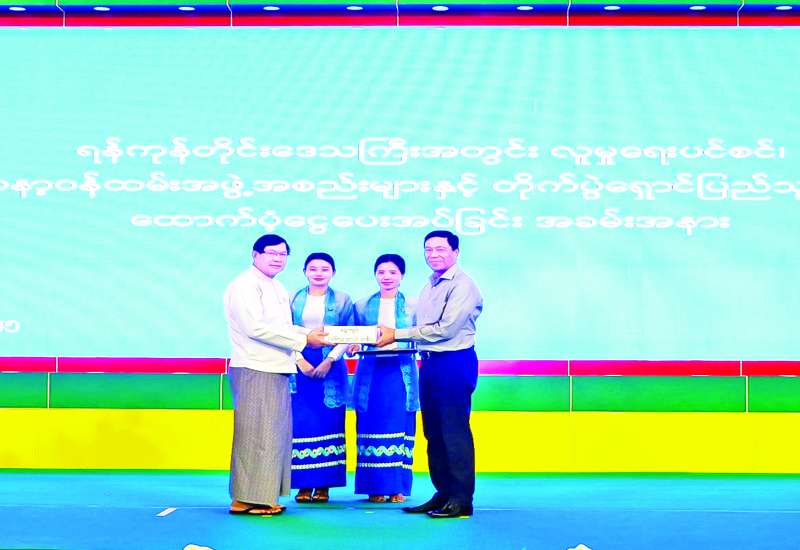၂၀၂၅-၂၀၂၆ ဘဏ္ဍာနှစ်အတွက် ရန်ကုန်တိုင်းဒေသကြီးအတွင်းရှိ အသက် ၈၅ နှစ်နှင့်အထက် သက်ကြီးပုဂ္ဂိုလ်များ လူမှုရေးပင်စင်ထောက်ပံ့ခြင်း၊ စေတနာ့ဝန်ထမ်းအဖွဲ့အစည်းများနှင့် ယာယီနေရပ်စွန့်ခွာပြည်သူများအတွက် ထောက်ပံ့ကြေးပေးအပ်ခြင်းအခမ်းအနားကို ယနေ့နံနက်ပိုင်းတွင် ရန်ကုန်တိုင်းဒေသကြီးအစိုးရအဖွဲ့ရုံး မင်္ဂလာခန်းမ၌ ကျင်းပသည်။
