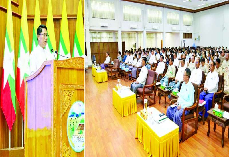 စိုက်ပျိုးရေး၊ မွေးမြူရေးနှင့်ဆည်မြောင်းဝန်ကြီးဌာန အဂတိလိုက်စားမှုတိုက်ဖျက်ရေးဆိုင်ရာ အသိပညာပေးရှင်းလင်းဆွေးနွေးခြင်းကို ယနေ့နံနက်ပိုင်းတွင် နေပြည်တော်ရုံးအမှတ် (၁၅) စုဝေးဆောင်ခန်းမ၌ ကျင်းပရာ ပြည်ထောင်စုဝန်ကြီး ဦးမင်းနောင်၊ အဂတိလိုက်စားမှုတိုက်ဖျက်ရေးကော်မရှင်ဥက္ကဋ္ဌ ဦးလွင်ဦးနှင့် ကော်မရှင်အဖွဲ့ဝင်များ၊ ဒုတိယဝန်ကြီးများ၊ အမြဲတမ်းအတွင်းဝန်နှင့် ဝန်ကြီးဌာနအောက်ရှိ ဦးစီးဌာနများ၊ တက္ကသိုလ်များမှ အရာထမ်း၊ အမှုထမ်းများ တက်ရောက်ကြသည်။