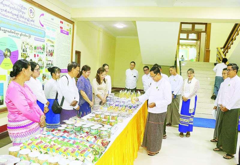 သမဝါယမနှင့်ကျေးလက်ဖွံ့ဖြိုးရေးဝန်ကြီးဌာန၊ အသေးစားစက်မှုလက်မှုလုပ်ငန်းဦးစီးဌာနမှ အကောင်အထည်ဖော်ဆောင်ရွက်လျက်ရှိသည့် အသေးစားကုန်ထုတ်လုပ်ငန်းများ ဖန်တီးပေးနိုင်ရေးနှင့် ကျေးလက်နေမိသားစုဝင်ငွေတိုးရေးစီမံကိန်းလုပ်ငန်းဖြင့် ကိုယ်ပိုင်လုပ်ငန်းများထူထောင်ပေးခဲ့သော လုပ်ငန်းရှင်များနှင့် တွေ့ဆုံဆွေးနွေးပွဲအခမ်းအနားကို ယနေ့နံနက်ပိုင်းက နေပြည်တော်ရှိ ရုံးအမှတ်(၁၆) ပြည်ထောင်စုဝန်ကြီးရုံး စုပေါင်းအစည်းအဝေးခန်းမ၌ ကျင်းပသည်။
