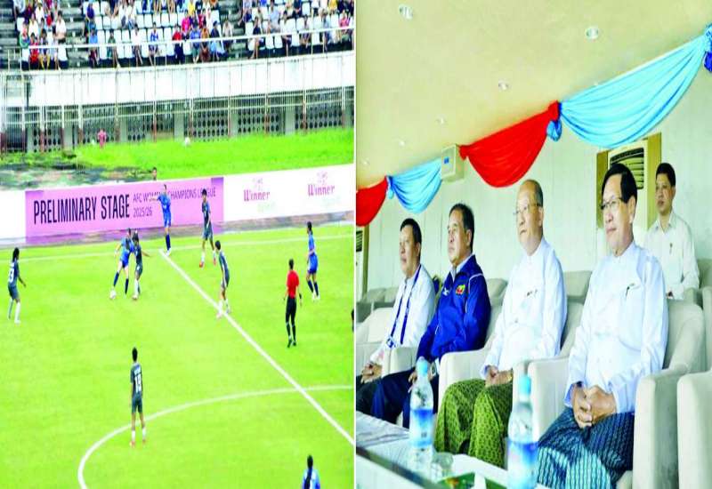 AFC Women’s Champions League (AWCL) 2025/2026 ပြိုင်ပွဲ၏ Preliminary Stage ပြိုင်ပွဲကို ယနေ့ညနေပိုင်းတွင် ရန်ကုန်မြို့ ဝေဇယန္တာလမ်းရှိ လူငယ်အားကစားလေ့ကျင့်ရေးစခန်း သုဝဏ္ဏဘောလုံးကွင်းတွင် ကျင်းပရာ မြန်မာနိုင်ငံအိုလံပစ်ကော်မတီဥက္ကဋ္ဌ အားကစားနှင့်လူငယ်ရေးရာဝန်ကြီးဌာနနှင့် ဟိုတယ်နှင့်ခရီးသွားလာရေးဝန်ကြီးဌာန ပြည်ထောင်စုဝန်ကြီး Jeng Phang နော်တောင်၊ ရန်ကုန်တိုင်းဒေသကြီး ဝန်ကြီးချုပ် ဦးစိုးသိန်းနှင့် တိုင်းဒေသကြီးဝန်ကြီးများ၊ အားကစားနှင့်ကာယပညာဦးစီးဌာန ညွှန်ကြားရေးမှူးချုပ်နှင့် တာဝန်ရှိသူများ၊ မြန်မာနိုင်ငံဘောလုံးအဖွဲ့ချုပ်ဥက္ကဋ္ဌ ဦးဇော်ဇော်နှင့် တာဝန်ရှိသူများ၊ ဖိတ်ကြားထားသောဧည့်သည်တော်များ တက်ရောက်ကြသည်။