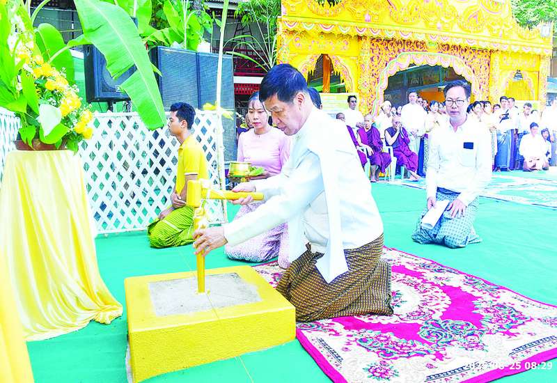 မန္တလေးငလျင်ကြီးကြောင့် ထိခိုက်ပြိုကျပျက်စီးခဲ့သည့် အမရပူရမြို့နယ်ရှိ မဟာဂန္ဓာရုံကျောင်းတိုက်အတွင်း ဂန္ဓကုဋိဘုရားကျောင်းဆောင်အသစ် ပြန်လည်တည်ဆောက်လှူဒါန်းခြင်း ရတနာပန္နက်တင်အခမ်းအနားကို ယနေ့နံနက်ပိုင်းက အဆိုပါကျောင်းတိုက်၌ ကျင်းပရာ နိုင်ငံတော်ဩဝါဒါစရိယ မဟာဂန္ဓာရုံကျောင်းတိုက် မဟာနာယကချုပ်ဆရာတော် ဘဒ္ဒန္တဣန္ဒောဘာသာဘိဝံသအမှူးပြုသော ဆရာတော်သံဃာတော်များ ကြွရောက်ချီးမြှင့်တော်မူသည်။