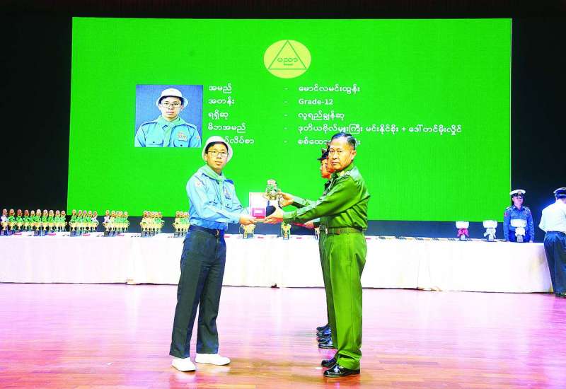၂၀၂၄-၂၀၂၅ ပညာသင်နှစ်၊ တက္ကသိုလ်ဝင်စာမေးပွဲ၌ ထူးချွန်စွာအောင်မြင်ခဲ့သည့် တပ်မတော် (ကြည်း၊ ရေ၊ လေ) မှ စစ်သည်များ၊ စစ်မှုထမ်းဆဲ/စစ်မှုထမ်းဟောင်း မိသားစုဝင်သားသမီးများ၊ စစ်သည်အစားခန့်အရပ်သားဝန်ထမ်းများ၏ သားသမီးများနှင့် လူရည်ချွန်ဆုရရှိသော ကျောင်းသား၊ ကျောင်းသူများ၊ နိုင်ငံတော်အဆင့် ဆောင်းပါး၊ စာစီစာကုံး၊ ပန်းချီ၊ ကာတွန်းနှင့် သင်္ချာစွမ်းရည်ဆုရ ကျောင်းသား၊ ကျောင်းသူများအား ဂုဏ်ပြုဆုချီးမြှင့်ခြင်းအခမ်းအနားကို ယနေ့မွန်းလွဲပိုင်းတွင် နေပြည်တော်ရှိ ဇေယျာသီရိဗိမာန်၌ ကျင်းပပြုလုပ်ရာ နိုင်ငံတော်လုံခြုံရေးနှင့်အေးချမ်းသာယာရေးကော်မရှင်ဥက္ကဋ္ဌ တပ်မတော်ကာကွယ်ရေးဦးစီးချုပ် ဗိုလ်ချုပ်မှူးကြီး မင်းအောင်လှိုင်ကိုယ်စား နိုင်ငံတော်လုံခြုံရေးနှင့်အေးချမ်းသာယာရေးကော်မရှင်ဒုတိယဥက္ကဋ္ဌ ဒုတိယတပ်မတော်ကာကွယ်ရေးဦးစီးချုပ် ကာကွယ်ရေးဦးစီးချုပ် (ကြည်း) ဒုတိယဗိုလ်ချုပ်မှူးကြီးစိုးဝင်း တက်ရောက်ဂုဏ်ပြုအမှာစကားပြောကြားပြီး ဂုဏ်ပြုဆုများ ပေးအပ်ချီးမြှင့်သည်။