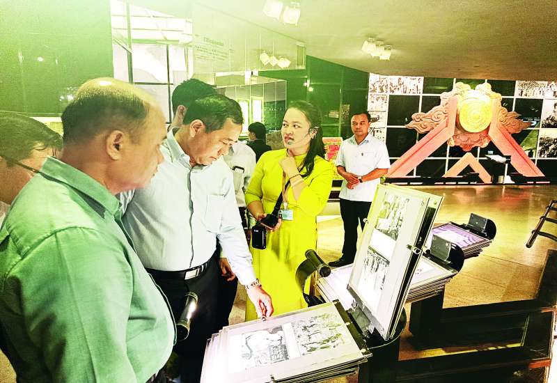 ဆောက်လုပ်ရေးဝန်ကြီးဌာန ဒုတိယဝန်ကြီး ဦးမျိုးမြင့်သည် ပဲခူးတိုင်းဒေသကြီး လမ်းပန်းဆက်သွယ်ရေးဝန်ကြီး၊ တာဝန်ရှိသူများနှင့်အတူ ယနေ့နံနက်ပိုင်းက ပဲခူးမြို့ရှိ ကမ္ဘောဇသာဒီနန်းတော်ပြုပြင်ခြင်း လုပ်ငန်းဆောင်ရွက်နေသည့် လုပ်ငန်းခွင်ကို ကြည့်ရှုစစ်ဆေးသည်။