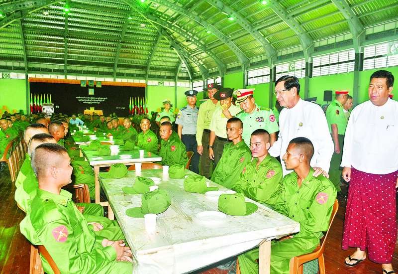 နိုင်ငံတော်ကာကွယ်ရေးနှင့်လုံခြုံရေးတာဝန်ထမ်းဆောင်နိုင်ရန်အတွက် ပြည်သူ့စစ်မှုထမ်းသင်တန်း အမှတ်စဉ်(၁၆)တွင် ပါဝင်တက်ရောက်ကြမည့် အရည်အချင်းကိုက်ညီသူ နိုင်ငံ့သားကောင်းများသည် သက်ဆိုင်ရာတိုင်းစစ်ဌာနချုပ်နယ်မြေများရှိ သင်တန်းကျောင်းအသီးသီးသို့ ရောက်ရှိ၍ လိုအပ်သည့် ကြိုတင်ပြင်ဆင်မှုများကို ဆောင်ရွက်ခဲ့ကြသည်။ ယနေ့နံနက်ပိုင်းတွင် အဆိုပါသင်တန်းကျောင်းအသီးသီး၌ ပြည်သူ့စစ်မှုထမ်းသင်တန်းအမှတ်စဉ်(၁၆) သင်တန်းဖွင့်ပွဲများ ပြုလုပ်ကြသည်။ သင်တန်းဖွင့်ပွဲများတွင် သင်တန်းကျောင်းများအလိုက် ကျောင်းအုပ်ကြီးများက သင်တန်းဖွင့်အမှာစကားများ ပြောကြားကြသည်။