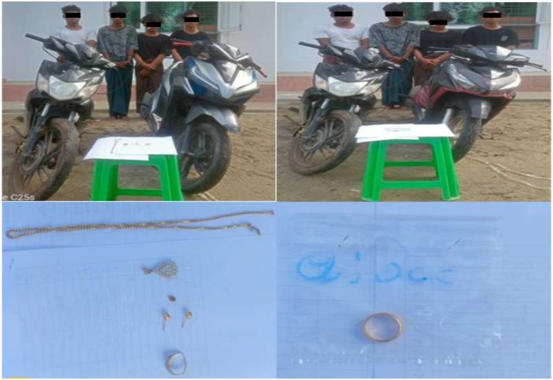 မန္တလေးတိုင်းဒေသကြီး၊ စဉ့်ကိုင်မြို့နယ်၌ ဩဂုတ်လ ၈ ရက်နေ့က ဆိုင်ကယ်လုယက်မှု ကျူးလွန်သူအမျိုးသား ၄ ဦးအား သက်သေခံပစ္စည်းများနှင့်အတူ ဖော်ထုတ်ဖမ်းဆီးရမိခဲ့ကြောင်း သိရသည်။
