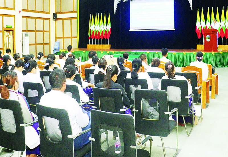 အခြေခံပညာ ဆရာ ဆရာမများ အထူးမွမ်းမံသင်တန်း အမှတ်စဉ်(၁၀၉)၏ သင်တန်းဆင်းပွဲ အခမ်းအနားကို ယနေ့နံနက်ပိုင်းတွင် နိုင်ငံ့ဝန်ထမ်းတက္ကသိုလ် (အောက်မြန်မာပြည်)ရတနာ သိင်္ဃခန်းမ၌ကျင်းပရာ ပြည်ထောင်စုရာထူးဝန်အဖွဲ့ဥက္ကဋ္ဌ ဦးစိုးမင်းဦး၊ အဖွဲ့ဝင်ဦးစိုးတင့်၊ ပြည်ထောင်စု ရာထူးဝန်အဖွဲ့ရုံး ညွှန်ကြားရေးမှူးချုပ်၊ နိုင်ငံ့ဝန်ထမ်းတက္ကသိုလ် (အောက်မြန်မာပြည်)မှ ပါမောက္ခချုပ်၊ ဒုတိယပါမောက္ခချုပ်များနှင့် တာဝန်ရှိသူများ၊ ပညာရေးဝန်ကြီးဌာနမှ တာဝန်ရှိသူများနှင့် သင်တန်းသား သင်တန်းသူများ တက်ရောက်ကြသည်။