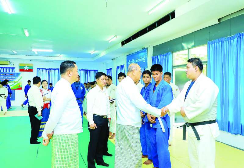 အားကစားနှင့်လူငယ်ရေးရာဝန်ကြီးဌာနနှင့် ဟိုတယ်နှင့်ခရီးသွားလာရေးဝန်ကြီးဌာန ပြည်ထောင်စုဝန်ကြီး Jeng Phang နော်တောင်သည် အားကစားနှင့်လူငယ်ရေးရာဝန်ကြီးဌာန ဒုတိယဝန်ကြီး ဦးဇင်မင်းထက်၊ အားကစားနှင့်ကာယပညာဦးစီးဌာနမှ တာဝန်ရှိသူများနှင့်အတူ ယနေ့နံနက်ပိုင်းတွင် (၃၃)ကြိမ်မြောက် အရှေ့တောင်အာရှအားကစားပြိုင်ပွဲ ဝင်ရောက်ယှဉ်ပြိုင်ရန် နေပြည်တော်၌ ဂျူဒိုနှင့်ပီတန်းအားကစားအဖွဲ့များ စခန်းဝင်လေ့ကျင့်နေမှုကို လှည့်လည်ကြည့်ရှုအားပေးသည်။