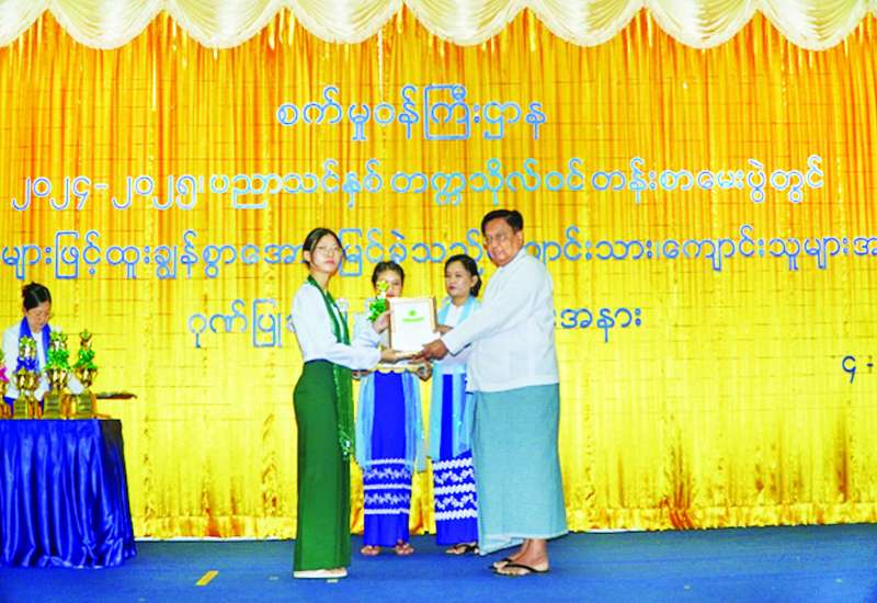 စက်မှုဝန်ကြီးဌာန ပြည်ထောင်စုဝန်ကြီး ဒေါက်တာချာလီသန်းသည် ယနေ့နံနက်ပိုင်းတွင် ၂၀၂၄-၂၀၂၅ ပညာသင်နှစ် တက္ကသိုလ်ဝင်တန်းစာမေးပွဲ ထူးချွန်စွာအောင်မြင်ခဲ့ကြသည့် စက်မှုဝန်ကြီးဌာနမှ ဝန်ထမ်းများ၏ သား၊ သမီးများအား ဂုဏ်ပြုဆုချီးမြှင့်သည့် အခမ်းအနားတက်ရောက်သည်။