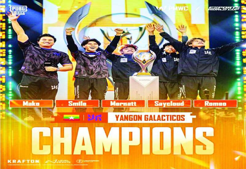 ဆော်ဒီအာရေဗျနိုင်ငံ Riyadh မြို့၌ ဇူလိုင် ၂၅ ရက်မှ သြဂုတ် ၃ ရက်အထိ ကျင်းပသည့် E-sports အားကစားကမ္ဘာ့ဖလားပြိုင်ပွဲ - ၂၀၂၅ PUBG Mobile World Cup တွင် မြန်မာနိုင်ငံမှ Yangon Ga-lacticos အသင်းက ကမ္ဘာ့ချန်ပီယံဆု ရရှိသည်။