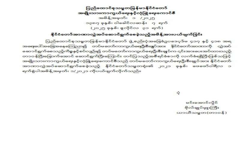 အကြမ်းဖက်အုပ်စုအဖြစ်ကြေညာထားသည့် CRPH ၊ NUG နှင့် ယင်းတို့၏ လက်ဝေခံအဖွဲ့အစည်းများ၊ ယင်းတို့နှင့် ဆက်နွှယ်နေသော အဖွဲ့အစည်းများ၊ လူပုဂ္ဂိုလ်များသည် နိုင်ငံတော်တည်ငြိမ်အေးချမ်းရေးကို ပျက်ပြားစေရန်နှင့် အစိုးရယန္တရားများ ပျက်ပြားစေရန် ရည်ရွယ်လျက်လှုံ့ဆော်ခြင်း၊ ဝါဒဖြန့်ခြင်းများပြုလုပ်ခဲ့မှုအပေါ် ဥပဒေနှင့်အညီ ထိရောက်စွာ အရေးယူသွားမည်ဖြစ်ကြောင်းနှင့် ထိုသို့လှုံ့ဆော်သူ၊ ဝါဒဖြန့်သူများအား ဆက်လက်ဖော်ထုတ် အရေးယူသွားမည်ဖြစ် ကြောင်း မိဘပြည်သူများသိရှိနိုင်ရေး အသိပေးသတင်းထုတ်ပြန်ပြီးဖြစသည်။