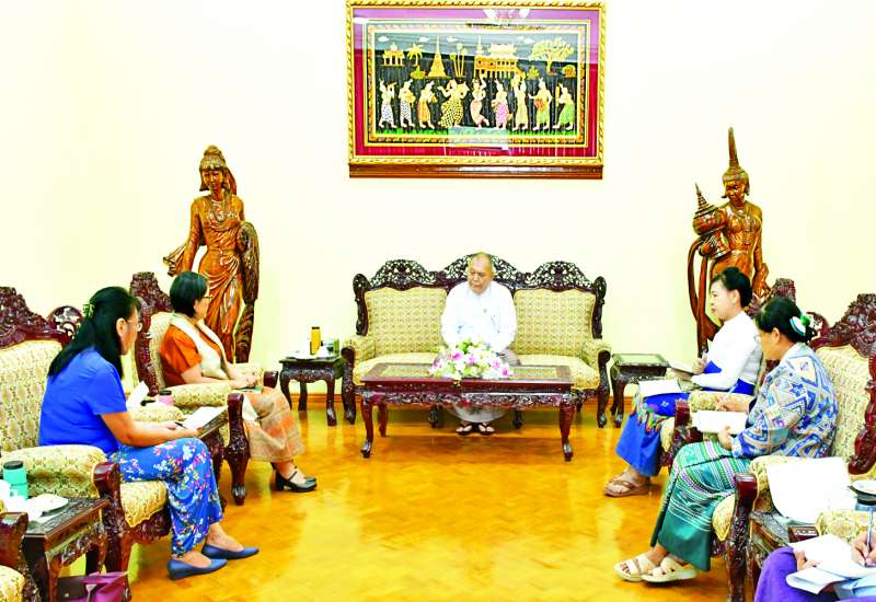 လူဝင်မှုကြီးကြပ်ရေးနှင့်ပြည်သူ့အင်အားဝန်ကြီးဌာန ပြည်ထောင်စုဝန်ကြီး ဦးမြင့်ကြိုင်သည် ကုလသမဂ္ဂဒုက္ခသည်များဆိုင်ရာ မဟာမင်းကြီးရုံး(UNHCR) မြန်မာနိုင်ငံဆိုင်ရာ ဌာနေကိုယ်စားလှယ် Ms. Noriko Takagi နှင့်အဖွဲ့အား ယနေ့မွန်းလွဲပိုင်းတွင် နေပြည်တော်ရှိအဆိုပါ ဝန်ကြီးဌာန ပြည်ထောင်စုဝန်ကြီး၏ ဧည့်ခန်းမ၌ လက်ခံတွေ့ဆုံသည်။