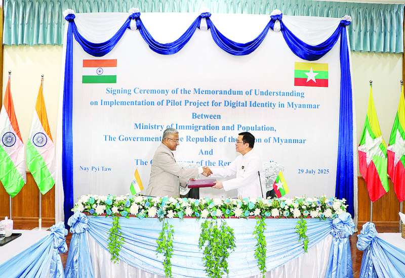 လူဝင်မှုကြီးကြပ်ရေးနှင့်ပြည်သူ့အင်အားဝန်ကြီးဌာနနှင့် အိန္ဒိယသမ္မတနိုင်ငံအစိုးရတို့အကြား ဆောင်ရွက်မည့် မြန်မာနိုင်ငံ Digital Identity အတွက် ရှေ့ပြေးစီမံကိန်း ပူးပေါင်းဆောင်ရွက်ခြင်းဆိုင်ရာ နားလည်မှုစာချွန်လွှာလက်မှတ်ရေးထိုးပွဲအခမ်းအနားကို ယမန်နေ့နံနက် ၁၀ နာရီက နေပြည်တော်ရှိ အဆိုပါဝန်ကြီးဌာနအစည်းအဝေးခန်းမ၌ ကျင်းပသည်။