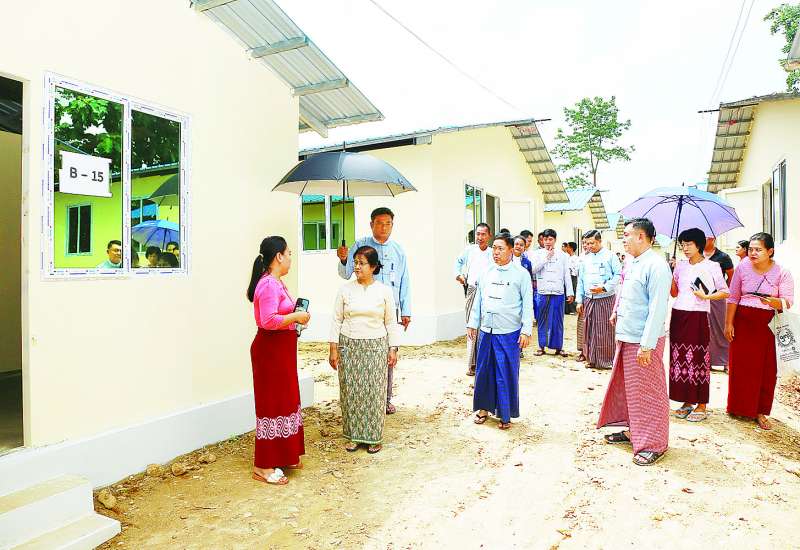 မြန်မာနိုင်ငံတော်ဗဟိုဘဏ်ဥက္ကဋ္ဌ ဒေါ်သန်းသန်းဆွေသည် ဒုတိယဥက္ကဋ္ဌ ဦးဇော်မြင့်နိုင်နှင့်အတူ ငလျင်ဒဏ်ကြောင့် ဝန်ထမ်းအိမ်ရာ ထိခိုက်ပျက်စီးခဲ့သော ဝန်ထမ်းမိသားစုများ နေထိုင်ရန်အတွက် မြန်မာနိုင်ငံတော်ဗဟိုဘဏ်ရုံး အမှတ်(၅၅) ဧရိယာအတွင်းတွင် တည်ဆောက်ပြီးစီးသည့် Bashar လိုင်းခန်း ၁၆ လုံး၊ Container House နှစ်ခန်းတွဲ ၃၇ လုံးနှင့် Container Singal ၅၉ လုံးတို့တွင် ဝန်ထမ်းများ စနစ်တကျပြောင်းရွှေ့ နေရာချထားမှုအခြေအနေများကို ကြည့်ရှုစစ်ဆေးသည်။