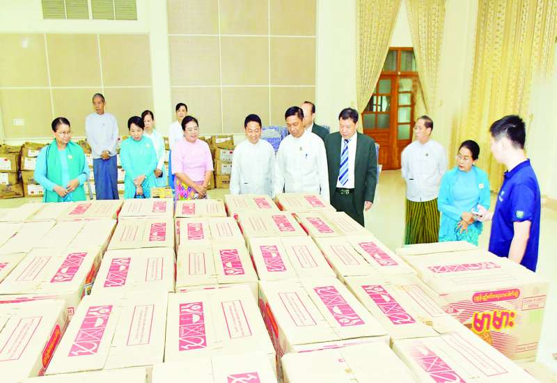 မြန်မာ - တရုတ်ပူးပေါင်းဆက်ဆံရေးအသင်းမှ အားကစားနှင့်လူငယ်ရေးရာဝန်ကြီးဌာန ငလျင်ဘေးသင့်ဝန်ထမ်းများအတွက် ထောက်ပံ့ပစ္စည်းများ ပေးအပ်လှူဒါန်းပွဲကို ယမန်နေ့ မွန်းလွဲပိုင်းတွင် နေပြည်တော် အားကစားလေ့ကျင့်ရေးစခန်း (Gold Camp) ရှိ ဘက်စုံသုံးခန်းမ၌ ကျင်းပခဲ့သည်။