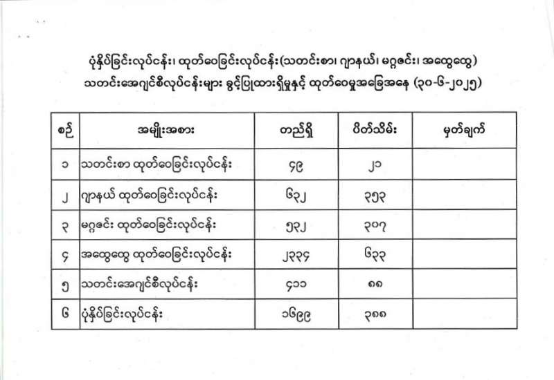 ပုံနှိပ်ခြင်းလုပ်ငန်း၊ ထုတ်ဝေခြင်းလုပ်ငန်း (သတင်းစာ၊ ဂျာနယ်၊ မဂ္ဂဇင်း၊ အထွေထွေေ) သတင်းအေဂျင်စီလုပ်ငန်းများ ခွင့်ပြုထားရှိမှုနှင့် ထုတ်ဝေမှုအခြေအနေ (၃၀-၆-၂၀၂၅)