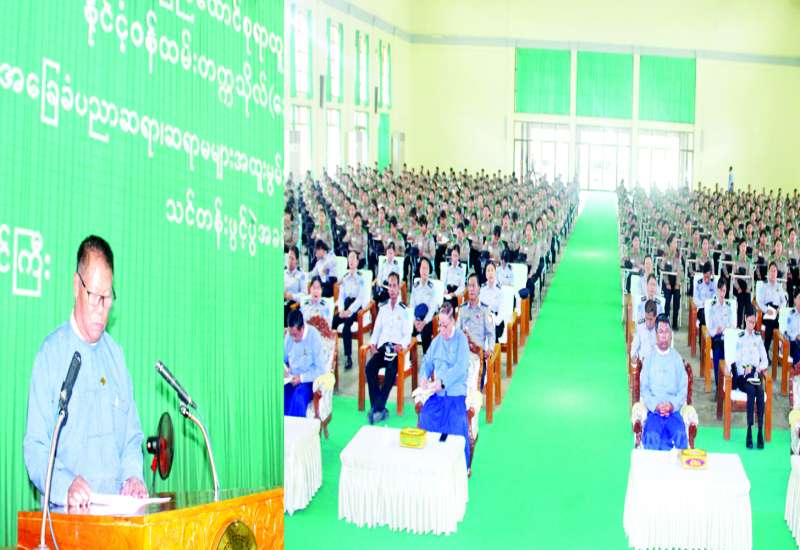 အခြေခံပညာ ဆရာ ဆရာမများ အထူးမွမ်းမံသင်တန်းအမှတ်စဉ် (၁၀၉) ၏ သင်တန်းဖွင့်ပွဲအခမ်းအနားကို ယမန်နေ့မွန်းလွဲ ၁ နာရီတွင် နိုင်ငံ့ဝန်ထမ်းတက္ကသိုလ်(အောက်မြန်မာပြည်) ရတနာသိင်္ဃခန်းမ၌ ကျင်းပရာ ပြည်ထောင်စုရာထူးဝန်အဖွဲ့ဥက္ကဋ္ဌ ဦးအောင်သော်၊ ပြည်ထောင်စုရာထူးဝန်အဖွဲ့ အဖွဲ့ဝင် ဦးစိုးတင့်၊ ပြည်ထောင်စုရာထူးဝန်အဖွဲ့ရုံး ညွှန်ကြားရေးမှူးချုပ်၊ နိုင်ငံ့ဝန်ထမ်းတက္ကသိုလ် (အောက်မြန်မာပြည်) မှ ပါမောက္ခချုပ်၊ ဒုတိယပါမောက္ခချုပ်များနှင့် တာဝန်ရှိသူများ၊ ပညာရေးဝန်ကြီးဌာနမှ တာဝန်ရှိသူများနှင့် သင်တန်းသား သင်တန်းသူများ တက်ရောက်ကြသည်။
