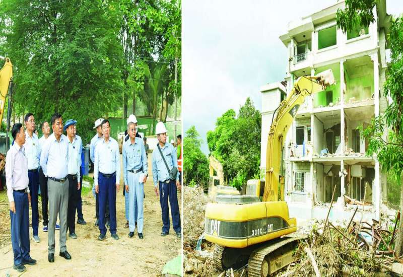 အဆောက်အဦများ ပြန်လည်ပြုပြင်အသုံးပြုရေးနှင့် အသစ်တည်ဆောက်ရေးကြီးကြပ်မှုကော်မတီဥက္ကဋ္ဌ နိုင်ငံတော်စီမံအုပ်ချုပ်ရေးကောင်စီအဖွဲ့ဝင် ဒုတိယဝန်ကြီးချုပ်နှင့် ကာကွယ်ရေးဝန်ကြီးဌာန ပြည်ထောင်စုဝန်ကြီး ဗိုလ်ချုပ်ကြီး မောင်မောင်အေးသည် ပြည်ထောင်စုဝန်ကြီး ဦးအောင်ကျော်ဟိုး၊ ဦးမျိုးသန့်၊ နေပြည်တော်ကောင်စီဥက္ကဋ္ဌ ဦးသန်းထွန်းဦးနှင့်အတူ ယနေ့မွန်းလွဲပိုင်းတွင် ငလျင်ဒဏ်ကြောင့် ထိခိုက်ပျက်စီးခဲ့သည့် နိုင်ငံတော်ပိုင်ရုံးအဆောက်အအုံများနှင့် နိုင်ငံတော်ပိုင်ဝန်ထမ်းအိမ်ရာများသို့သွားရောက်၍ အဆောက်အအုံများ ဖြိုချဖျက်သိမ်းခြင်းလုပ်ငန်းများ ဆောင်ရွက်မှုအခြေအနေများကို ကြည့်ရှုစစ်ဆေးသည်။