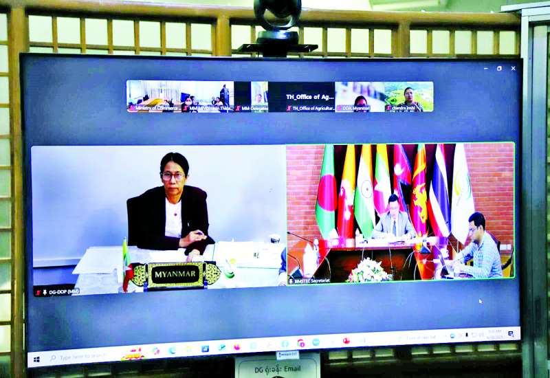 ဘင်းမ်စတက်အဖွဲ့ဝင်နိုင်ငံများ၌ စိုက်ပျိုးရေးဆိုင်ရာကုန်သွယ်မှုနှင့် ရင်းနှီးမြှုပ်နှံမှုများ မြှင့်တင်နိုင်ရန် အမျိုးသားပို့ကုန်ဆိုင်ရာမဟာဗျူဟာများ မျှဝေဖလှယ်ခြင်းဆိုင်ရာ ဒေသတွင်းအလုပ်ရုံဆွေးနွေးပွဲ (Regional Workshop on Sharing National Export Strategies to Enhance Agricultural Trade & Investment in BIMSTEC) ကို ယမန်နေ့ နံနက် ၉ နာရီတွင် အွန်လိုင်းစနစ်ဖြင့် ကျင်းပရာ စိုက်ပျိုးရေး၊ မွေးမြူရေးနှင့် ဆည်မြောင်းဝန်ကြီးဌာန စီမံကိန်းဦးစီးဌာန ညွှန်ကြားရေးမှူးချုပ် ဒေါက်တာသန္တာကြည်က သဘာပတိအဖြစ် ဆောင်ရွက်သည်။