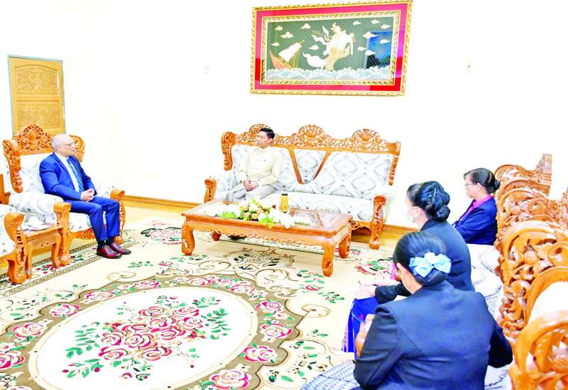 ဆောက်လုပ်ရေးဝန်ကြီးဌာန ပြည်ထောင်စုဝန်ကြီး ဦးမျိုးသန့်သည် မြန်မာနိုင်ငံဆိုင်ရာ အိန္ဒိယသံအမတ်ကြီး H.E. Mr. Abhay Thakur အား ယနေ့ မွန်းလွဲ ၂ နာရီတွင် နေပြည်တော် ရုံးအမှတ် (၁၁) ဆောက်လုပ်ရေးဝန်ကြီးဌာန ဧည့်ခန်းမ၌ လက်ခံတွေ့ဆုံသည်။