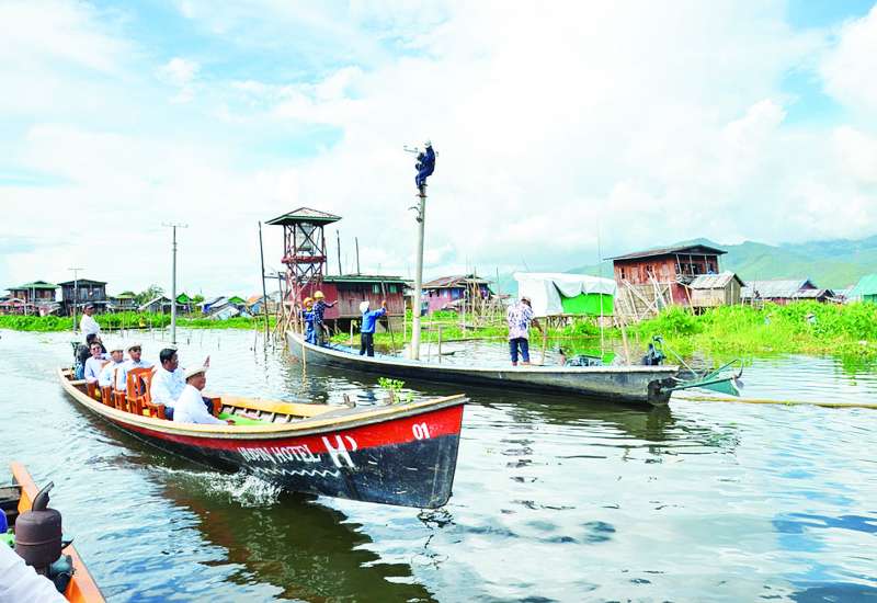 လျှပ်စစ်စွမ်းအားဝန်ကြီးဌာန ပြည်ထောင်စုဝန်ကြီး ဦးဉာဏ်ထွန်းသည် ရှမ်းပြည်နယ်ဝန်ကြီးချုပ် ဦးအောင်အောင်၊ ဌာနဆိုင်ရာတာဝန်ရှိသူများနှင့်အတူ ယနေ့နံနက်ပိုင်းတွင် ရှမ်းပြည်နယ် (တောင်ပိုင်း) ညောင်ရွှေမြို့နယ်ရှိ အထက်ဘီလူးချောင်း ရေအားလျှပ်စစ်စီမံကိန်း၏ လုပ်ငန်းဆောင်ရွက်ထားရှိမှုနှင့် မန္တလေးငလျင်ကြီးကြောင့် အင်းလေးဒေသကျေးရွာများအတွင်းရှိ ပျက်စီးသွားသည့် ဓာတ်အားလိုင်းများ၊ ထရန်စဖော်မာများနှင့် ဓာတ်အားလွှတ်ပစ္စည်းများ ပြန်လည်ပြုပြင်ဆောင်ရွက်ပြီးစီးမှုနှင့် ပြုပြင်ခြင်းလုပ်ငန်းများ ဆောင်ရွက်နေမှုအခြေအနေတို့ကို သွားရောက်ကြည့်ရှုစစ်ဆေးသည်။
