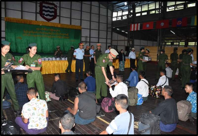 ဧရာဝတီတိုင်းဒေသကြီးအတွင်း ပြည်သူ့စစ်မှုထမ်းသင်တန်း အမှတ်စဉ် (၁၄) သို့ တက်ရောက်မည့် ပြည်သူ့စစ်မှုထမ်းသင်တန်းသားများအား တွေ့ဆုံပွဲကို ယနေ့နံနက်ပိုင်းတွင် ပုသိမ်တပ်နယ်အားကစားခန်းမ၌ပြုလုပ်ရာ ဧရာဝတီတိုင်းဒေသကြီးဝန်ကြီးချုပ် ဦးတင်မောင်ဝင်း၊ အနောက်တောင်တိုင်းစစ်ဌာနချုပ်တိုင်းမှူး ဗိုလ်မှူးချုပ်စိုးကျော်ထက်နှင့် တာဝန်ရှိသူများ၊ ဌာနဆိုင်ရာတာဝန်ရှိသူများနှင့် ပြည်သူ့စစ်မှုထမ်းသင်တန်းသားများ တက်ရောက်ကြသည်။