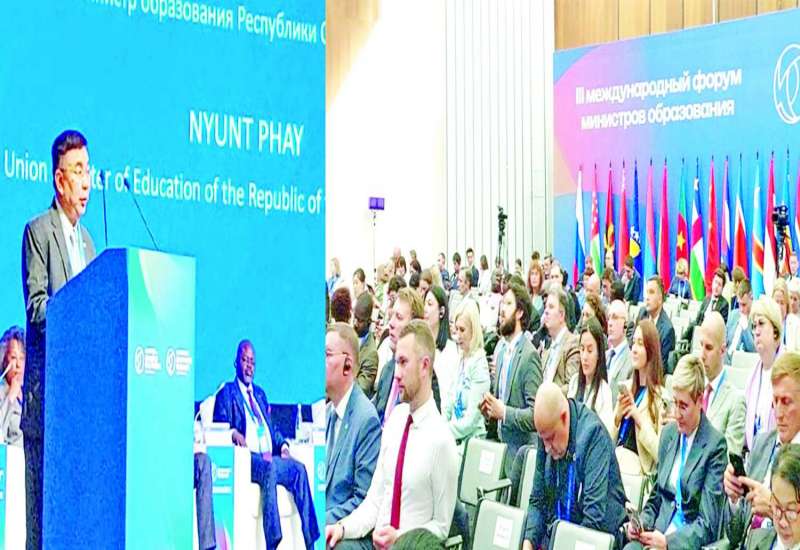 ရုရှားဖက်ဒရေးရှင်းနိုင်ငံ၌ ဇွန် ၁၁ ရက်မှ ၁၂ ရက်အထိ “Shaping the Future” ကမ္ဘာကြီး၏ အနာဂတ်ကို ပညာရေးဖြင့်ပုံဖော်ခြင်းဟူသော ခေါင်းစဉ်ဖြင့် ကျင်းပသည့် ပညာရေးဝန်ကြီးများ၏ အပြည်ပြည်ဆိုင်ရာဖိုရမ်သို့ တက်ရောက်ရန် ကာဇန်မြို့၌ ရောက်ရှိနေသည့် ပညာရေးဝန်ကြီးဌာန ပြည်ထောင်စုဝန်ကြီး ဒေါက်တာညွန့်ဖေ ဦးဆောင်သော မြန်မာကိုယ်စားလှယ်အဖွဲ့သည် ရုရှားဖက်ဒရေးရှင်းနိုင်ငံ ပညာရေးဝန်ကြီး Sergey Kravtsov ဦးဆောင်သော ကိုယ်စားလှယ်အဖွဲ့နှင့် IT Park အဆောက်အအုံရှိ အစည်းအဝေးခန်းမ၌ တွေ့ဆုံကာ နှစ်နိုင်ငံပညာရေးဆိုင်ရာ ပူးပေါင်းဆောင်ရွက်ရေးကိစ္စရပ်များကို ရင်းရင်းနှီးနှီးဆွေးနွေးခဲ့သည်။