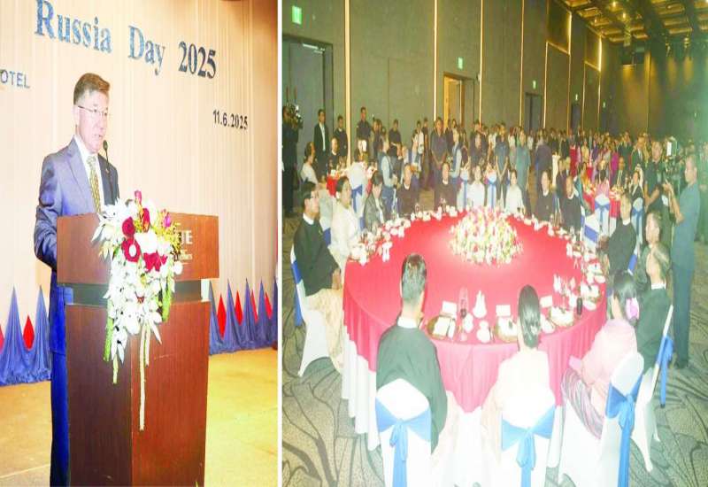ရန်ကုန်မြို့အခြေစိုက် ရုရှားဖက်ဒရေးရှင်းနိုင်ငံသံရုံးက ကျင်းပသည့် ရုရှားဖက်ဒရေးရှင်းနိုင်ငံ၏ အမျိုးသားနေ့အထိမ်းအမှတ် ဧည့်ခံပွဲအခမ်းအနားကို ယနေ့ညပိုင်းတွင် ရန်ကုန်မြို့ Lotte Hotel ၌ ကျင်းပရာ နိုင်ငံတော်စီမံအုပ်ချုပ်ရေးကောင်စီအတွင်းရေးမှူး ဗိုလ်ချုပ်ကြီး အောင်လင်းဒွေးနှင့် ဇနီးတို့ တက်ရောက်သည်။