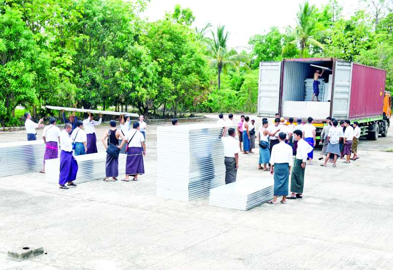 လျှပ်စစ်စွမ်းအားဝန်ကြီးဌာန ပြည်ထောင်စုဝန်ကြီး ဦးဉာဏ်ထွန်းသည် ဒုတိယဝန်ကြီး ဦးအေးကျော်နှင့်အတူ ယနေ့နံနက်ပိုင်းတွင် ဥတ္တရသီရိမြို့နယ်ရှိ နေပြည်တော်ဗဟိုသင်တန်းကျောင်းဝင်းအတွင်း ဝန်ကြီးဌာနမှ ငလျင်ဘေးသင့်ဝန်ထမ်းများနှင့် ဝန်ထမ်းမိသားစုများ ယာယီပြောင်းရွှေ့နေထိုင်နိုင်ရန်အတွက် Container House များ တည်ဆောက်နိုင်ရန်ပစ္စည်းများ ရောက်ရှိမှု၊ တပ်ဆင်တည်ဆောက်နေမှုအခြေအနေကို သွားရောက်ကြည့်ရှုစစ်ဆေးသည်။